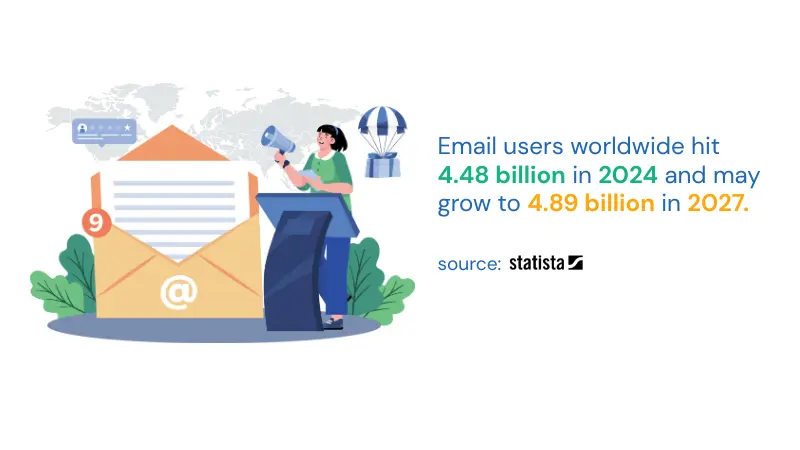In 2024, there were 4.48 billion global email users, and analysts predict that number will increase to 4.89 billion by 2027. Furthermore, 87% of marketing leaders agree that email marketing is crucial to the success of their company, highlighting its importance as a key strategy in business communication and growth.