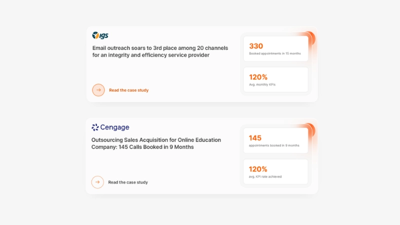 For companies that need consistent lead flow across multiple regions, longer sales cycles, or complex buying committees, Callbox’s Account-Based Marketing approach delivers continuous nurturing rather than one-time appointment setting. Trusted by Salesforce, AWS, and Google, Callbox is particularly well-suited for enterprise technology, healthcare, finance, and manufacturing sectors where precision targeting and multi-touch outreach are non-negotiable.