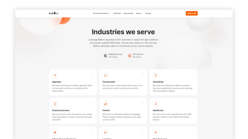 Belkins typically targets mid-market to enterprise clients in technology, manufacturing, financial services, healthcare, and similar sectors. Their strongest case studies tend to cluster around SaaS, adtech, and B2B services companies operating in North American and Western European markets.