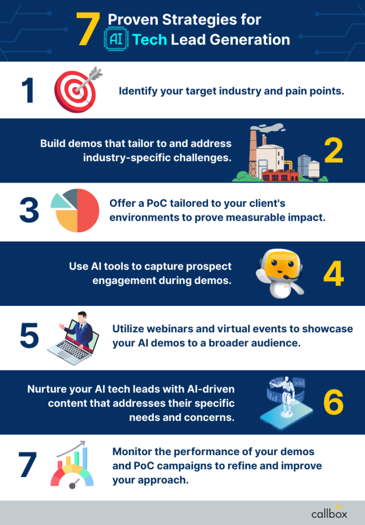- Utilize webinars and virtual events to showcase your AI demos to a broader audience.